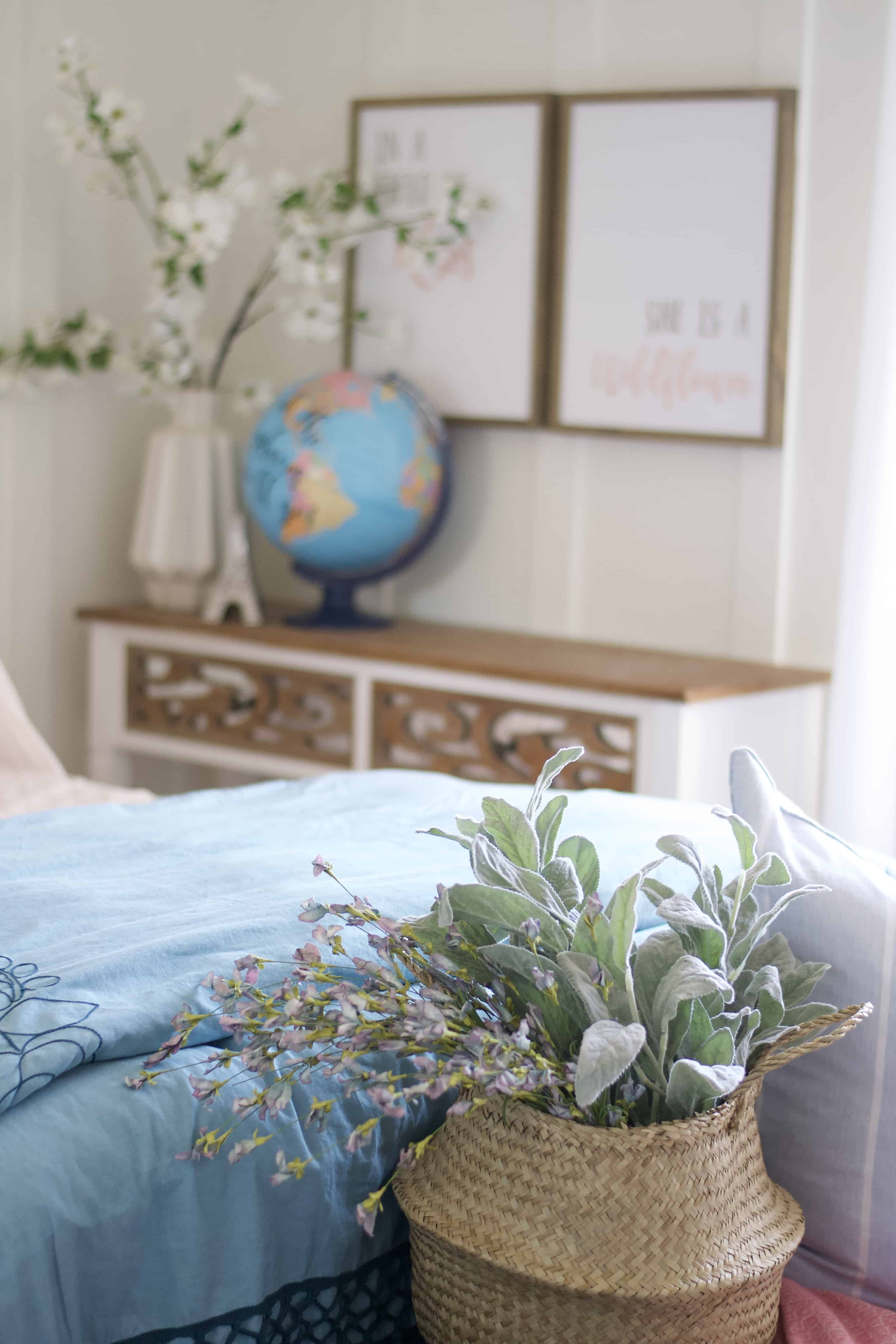 I have been dying for this piece to finally arrive and it has! The finishing (backordered) piece of Grace’s new room, the room I completed recently for the One Room Challenge this Spring. Every project has to have a saga and this rug was mine. First, you may remember, I ordered a different one that was 3″ too wide for my room because I had a severely bad brain mishap…. it happens.